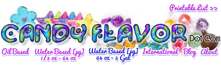 This is our bulk candy flavoring page. For smaller sizes of candy flavor please click this link. These are water based flavors designed for high heat applications such as candy flavor. International customers need to add fees to order. Click here for international shipping.
